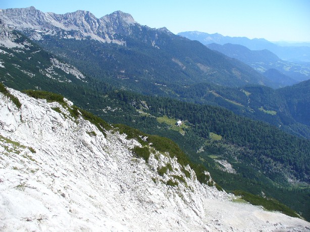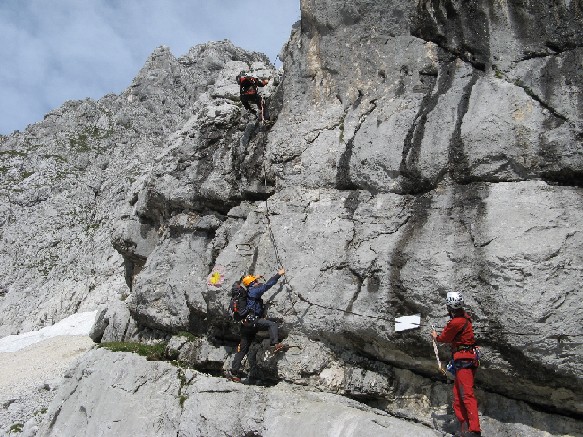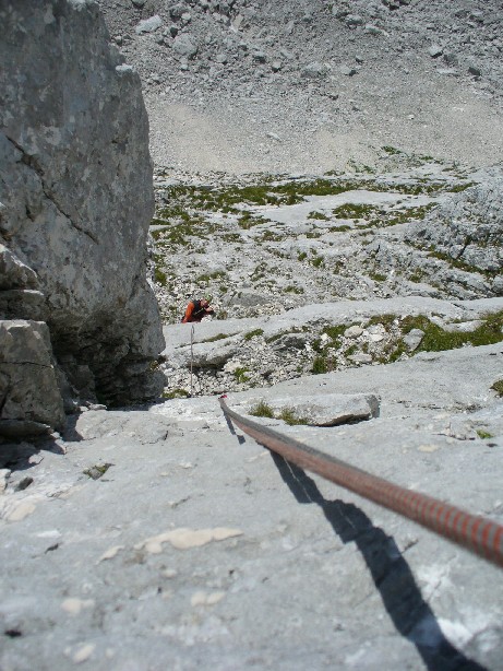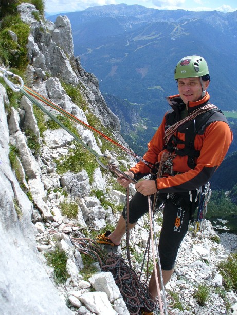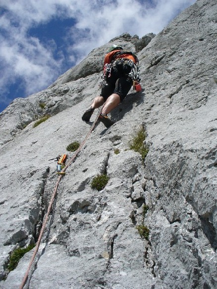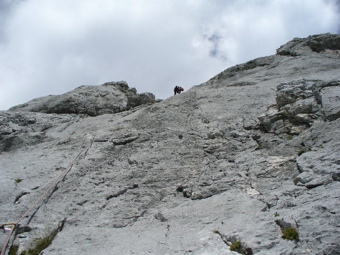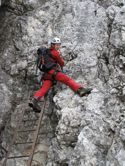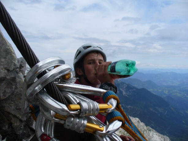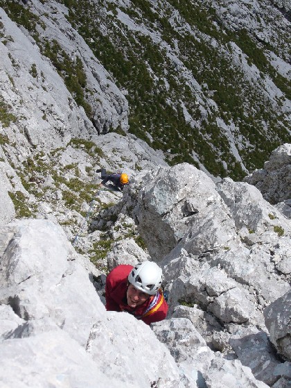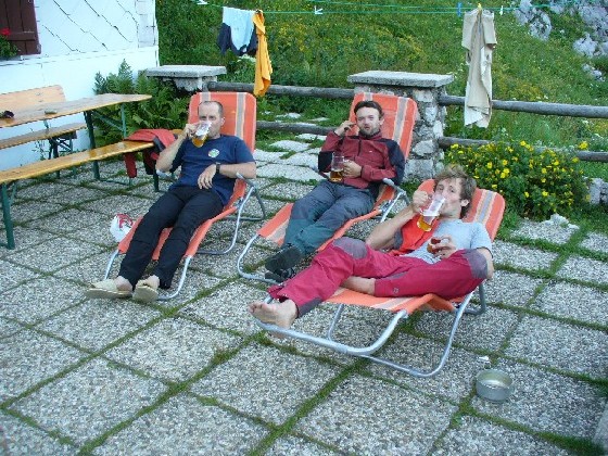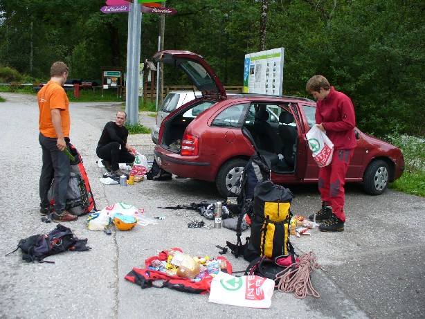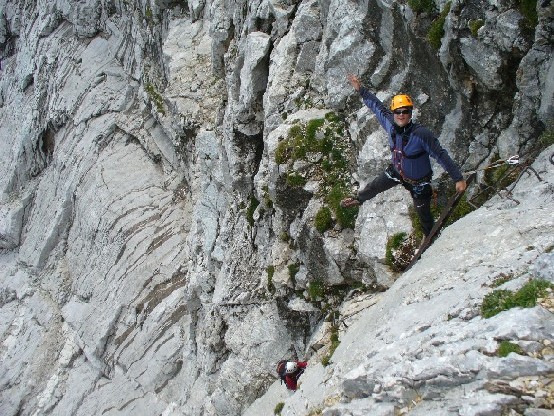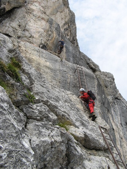 První alpskou štací byla oblast Totes Gebirge - masív Grosser Prielu, kterážto lokalita by se metaforou horolezce dala shrnout hodnocením „Jednou a dost“. Tím je myšleno, že oblast je to sice pěkná, ale lezecky nepříliš bohatá. Jednou sem zajet ale určitě za to stojí, což pro členy LBE vzhledem k možnosti vývozu těžké batožiny lanovkou na chatu Prielschutzhaus (1420 m) platí dvojnásob. Po absolvování můžeme doporučit: Bert Rinesch Steig (ferata, obtížnost D), Herbsttraum 5+ (7 d.), SO-Diagonale 4+ (9 d.), cesty v Klettergarten kouda nad chatou, točenej Stiegel na chatě, lahváč Weissbier tamtéž a v neposlední řadě úsměv slečny domácí na báru. Trochu lentilky pod kobercem, ale na horách (a v Rakousku…) člověk hodnotí jináč. A krom toho tam maj bezva kořenovou čistírnu, schéma viz. foto č. 50.