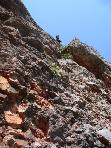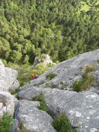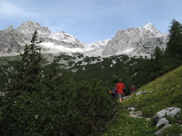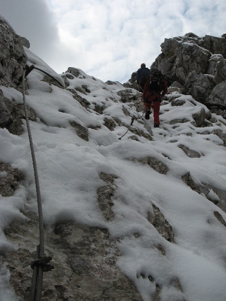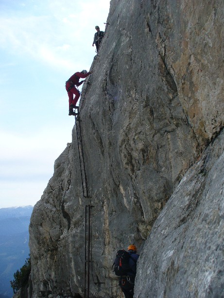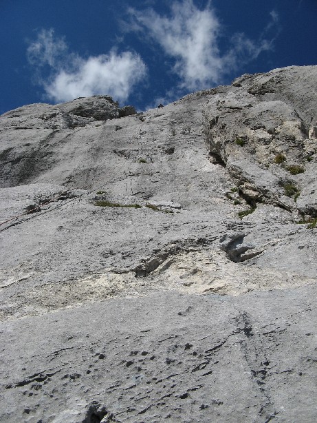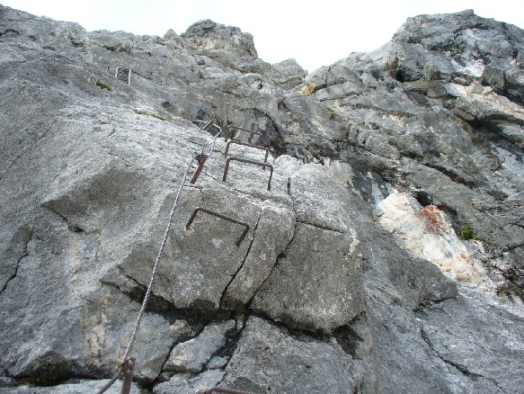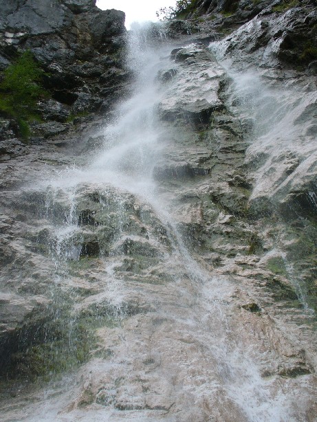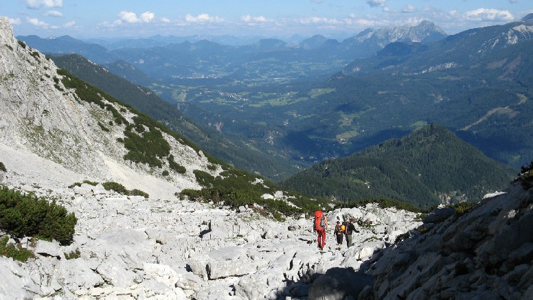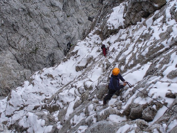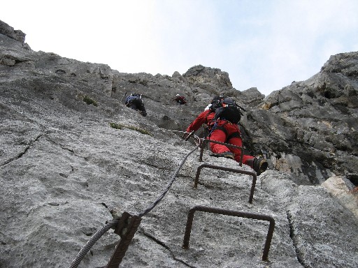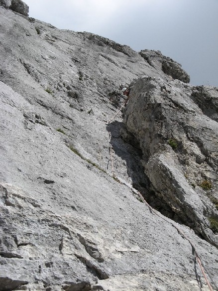 První alpskou štací byla oblast Totes Gebirge - masív Grosser Prielu, kterážto lokalita by se metaforou horolezce dala shrnout hodnocením „Jednou a dost“. Tím je myšleno, že oblast je to sice pěkná, ale lezecky nepříliš bohatá. Jednou sem zajet ale určitě za to stojí, což pro členy LBE vzhledem k možnosti vývozu těžké batožiny lanovkou na chatu Prielschutzhaus (1420 m) platí dvojnásob. Po absolvování můžeme doporučit: Bert Rinesch Steig (ferata, obtížnost D), Herbsttraum 5+ (7 d.), SO-Diagonale 4+ (9 d.), cesty v Klettergarten kouda nad chatou, točenej Stiegel na chatě, lahváč Weissbier tamtéž a v neposlední řadě úsměv slečny domácí na báru. Trochu lentilky pod kobercem, ale na horách (a v Rakousku…) člověk hodnotí jináč. A krom toho tam maj bezva kořenovou čistírnu, schéma viz. foto č. 50.