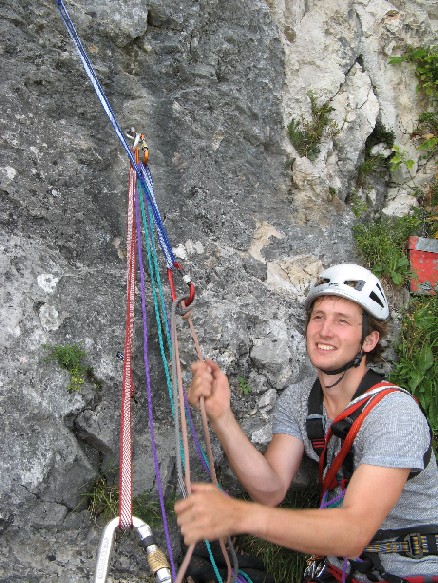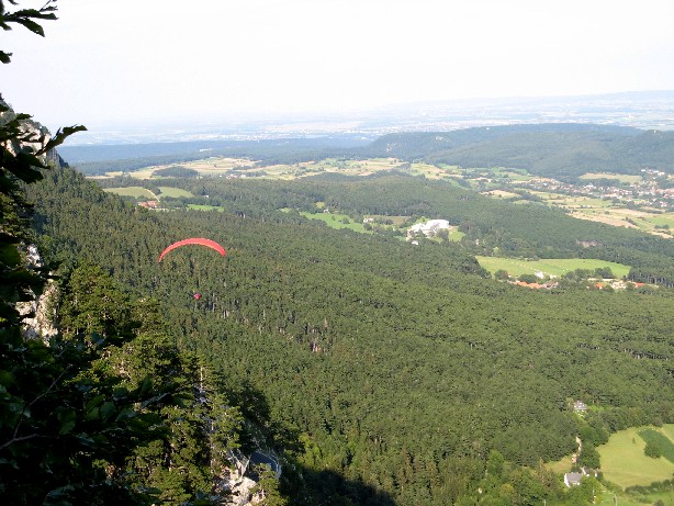 Středa - přejezd na Hohe Wand. Oblast 65 km jihozápadně od Vídně. Parádní lezení po vápenaté, sem tam zarostlé svislici. Alpské toto předhůří je horolezeckou lahůdkou. Stovky cest všech, většinou chytlavých obtížností - V, VI, pevná skála, sem tam panáček nebo panenka na padáčku, super výhledy a hlavně - skvělá hospoda (hemenex und párky höchste Niveau !), o čemž může podat živé svědectví Fuga a spolek mediků, kteří podlehli kouzelnému mámení místního výčepního a jeho české manželky a strávili tak svou první noc v tanečním sálu pravé rakouské hospody, byvše nuceni do pozdních nočních hodin ochutnávat rozličné nápoje včetně skvělého burčáku a tlachat s obsluhou. Borůvčák, který pro tuto veselici večer předchozího dne připravil živnou půdu, tou dobou již kolíbal mokasíny na pohřeb do vídeňského krematoria.