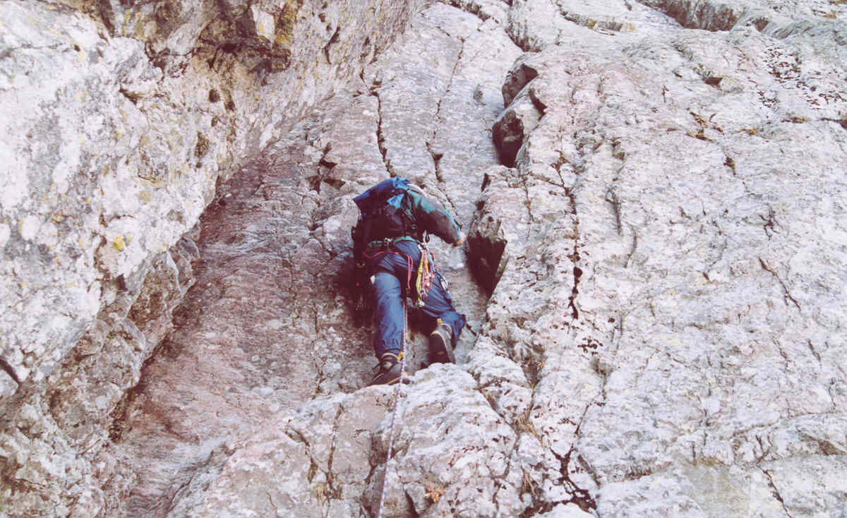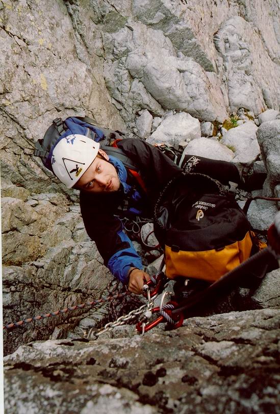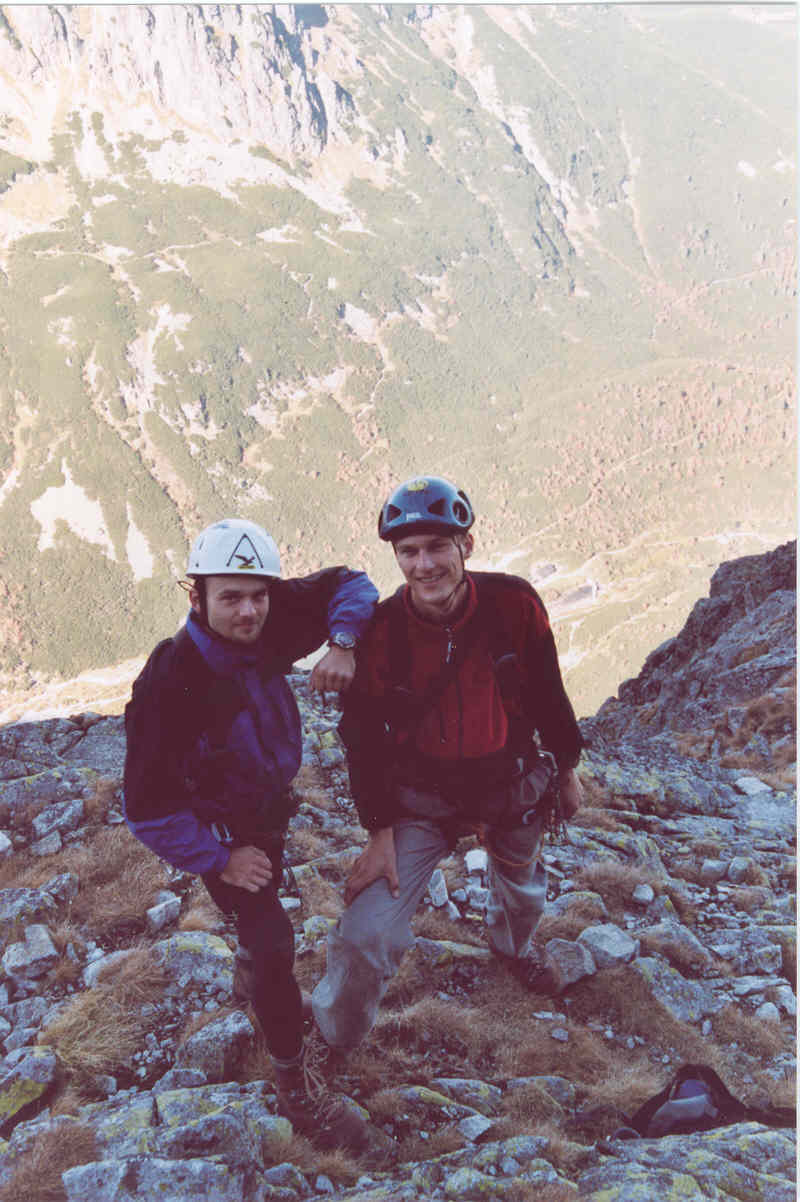 Duško-Vláďa-Borůvka a akce Weberovka v severní stěně Kežmarského štítu. Na Brnčálce tam je fajn, ale dy? to znáte.