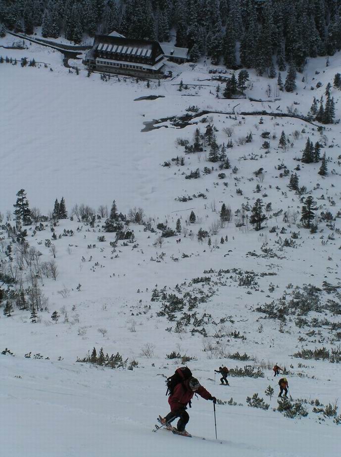 V piatok sa vyrážalo s 20 kg batohmi na Popradské pleso a môžem povedať že na lyžiach to nie je nič moc. Niektorým jedincom však nestačilo a vybehli si na Ostrvu, ktorá ich odmenila slniečkom ale poriadne im prefúkla kožuchy. Samozrejma niekto musel držať stráž a tak Oto a ja sme sa podujali na neľahkú úlohu strážiť si každý vlastné sny.
