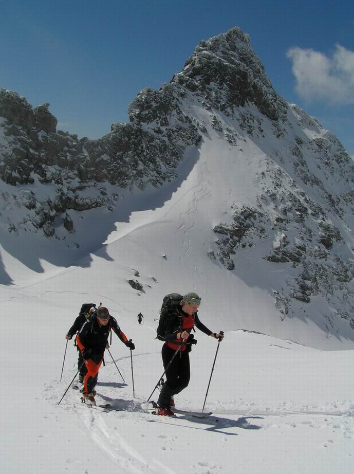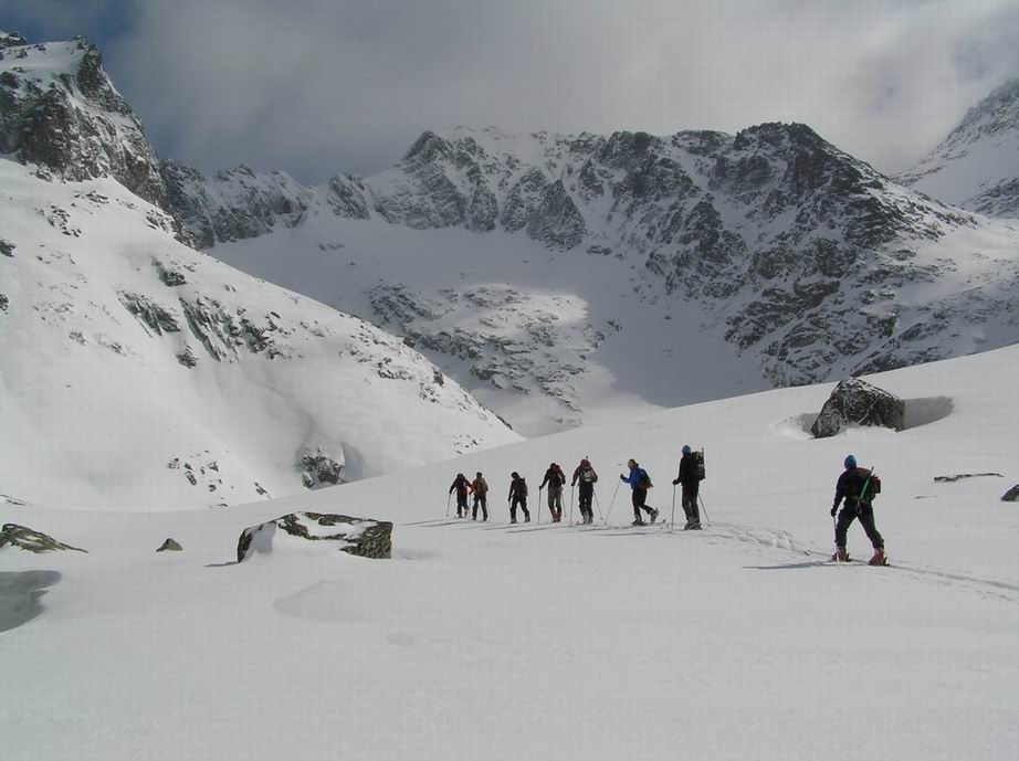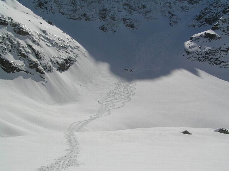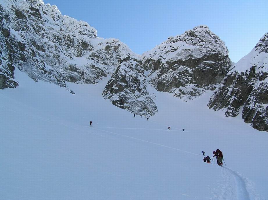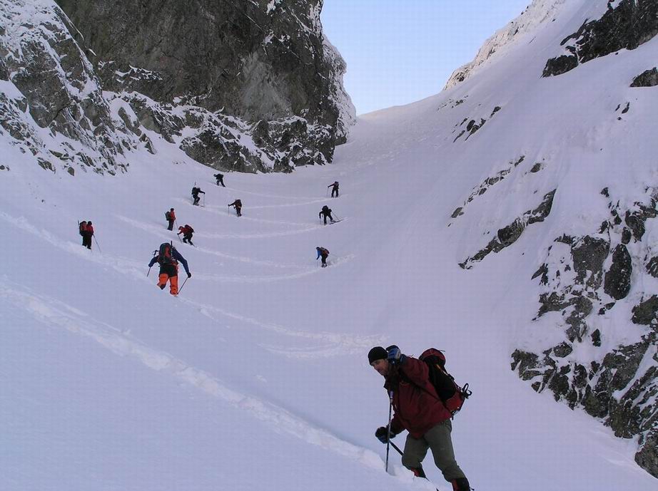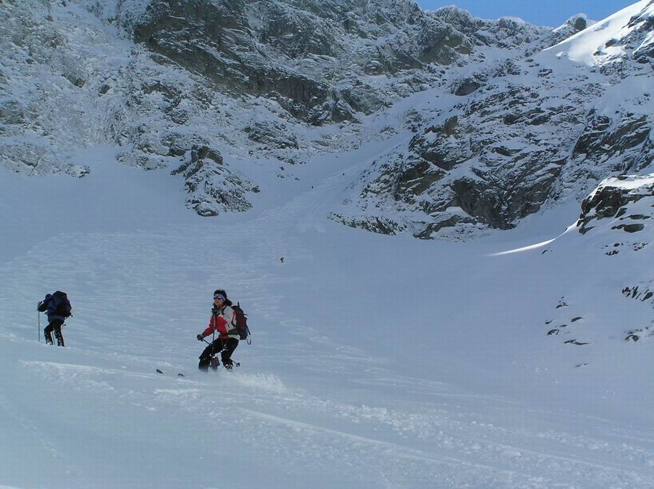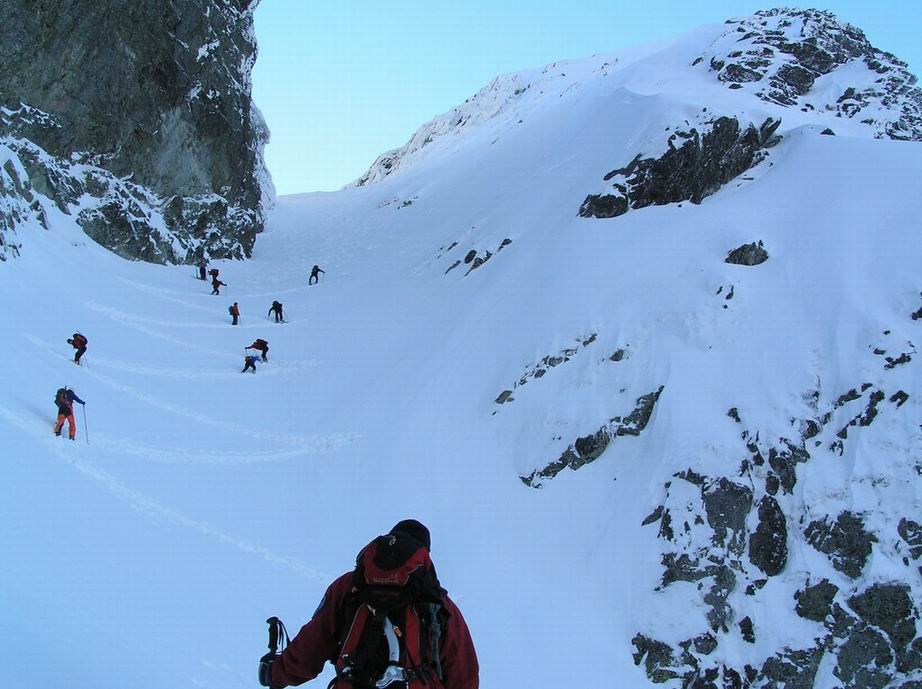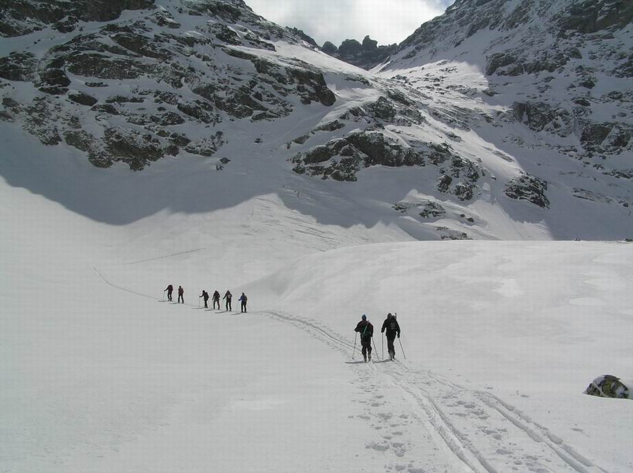 ( Popradské pleso - Chata Rysy - sedlo Váhy - Česká dolina - Železná brána - Popradské pleso) tomu hovorím seriózny skialpinizmus, všetko bolo - pásy, mačky, cepíny, žľaby a lavínky. Myslím, že obrazová forma viď. foto hovorí za všetko, tu sú slová zbytočné.