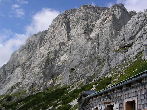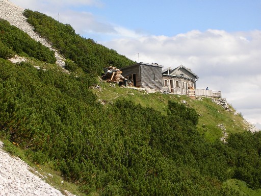 Osvědčená chata Werfererhütte nás svou pohostinností nezklamala. Bydlení skoro ve dvou tisících za pět euro na noc a navíc jste na chatě vždycky úplně sami. Tato skutečnost řadí chatu i se záchodem se spodním vzdušným prouděním a bez teplé vody na úroveň několikahvezdičkového hotelu. Jediné co nám nepřálo bylo počasí. Krásné odpočinkové osmnáctidélkové lezení za maximálně III+ jsme museli změnit na pěší výlet do místního sedla. Ovšem zklamáni jsme tím rozhodně nebyli a i „pěšák“ stál to za to. Na Werferener Hütte jsem dal řeč s milým správcem chaty Gerhardem. Stabilní dobré počasí pro lezení v Tennengebirge je nejlepší prý v září a určitě bude rád, když se tam někdy jako oddíl ukážeme. Jinak počet lam, které na chatě přes léto chovají, stoupl z jedné na dvě :-).