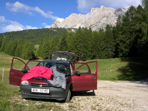 Linie trasy nebyla stanovena pevně, ale je dobré předem říci, kudy se stopy auta a otisky našich nohou nakonec ubíraly. Cesta vykrystalizovala v následující dráhu: Praha - Salzburg - Werfenerhütte (1969 m n.m., Tennengebirge) - Zell am See - Grobglockner Hochalpenstrabe - Heiligenblut - Lienz - Sillian (IT) - Toblach - Misurina (Sextener Dolomiten) - Toblinger Knoten (2617 m n.m.) - Cortina D’Ampezzo - Cima di Mezzo (3154 m n.m.) - Veneto - Mestre - Ravenna - Bologna - Venezia - Udine - Villach - Salzburg - Praha.