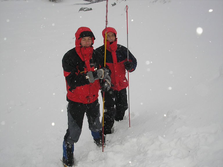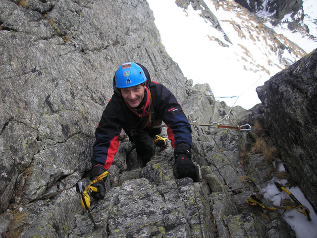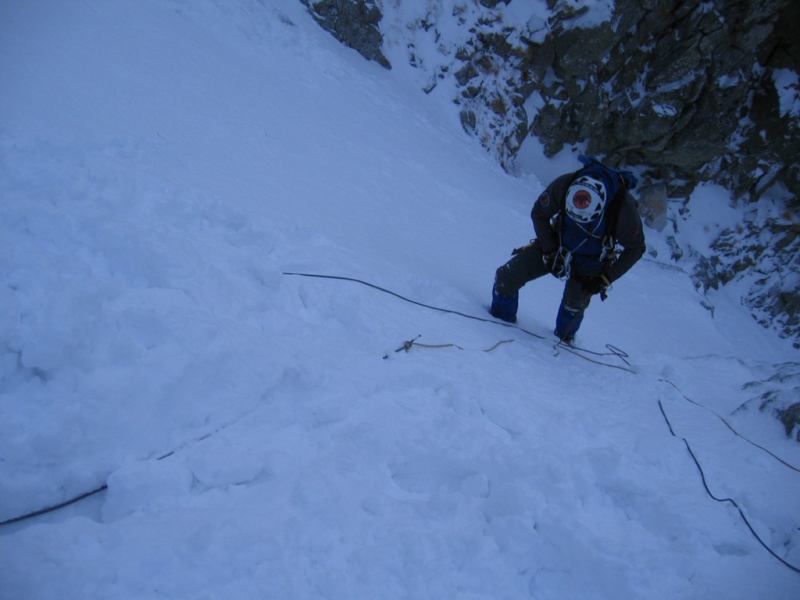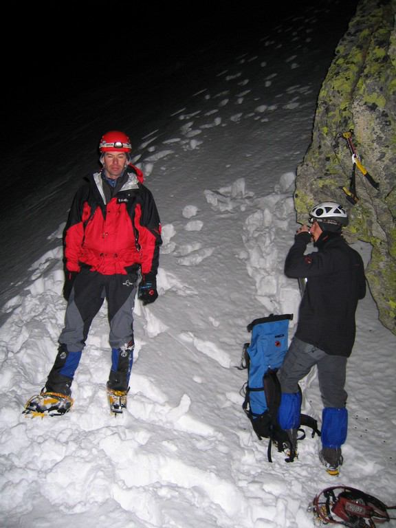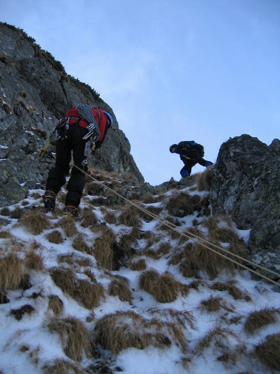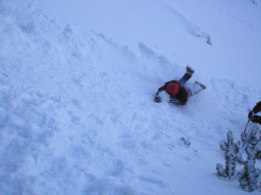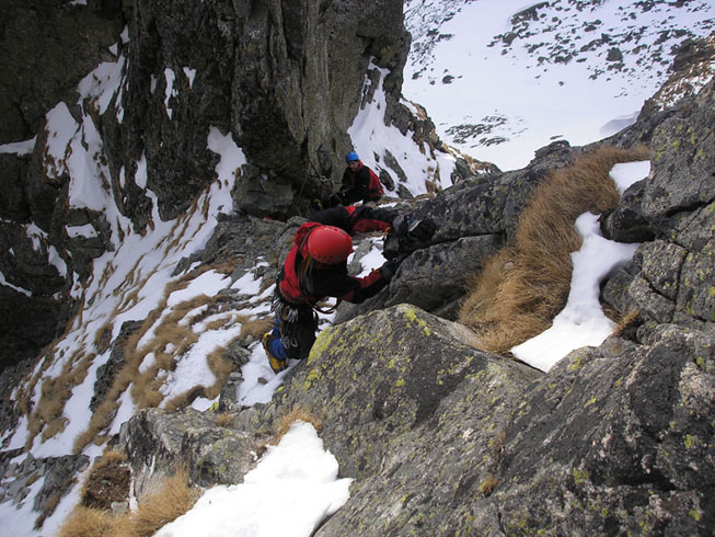 Letošní teplé počasí s minimem sněhu se nevyhnulo ani Tatrám. Naštěstí ledy vydržely a nakonec jsme byli s Lubošem (HK AKA Praha) rádi, že nebyla velká kosa - oceňovali jsme zejména při delších prodlevách na štandech (skoro pořád) na větrem bičovaných místech (skoro všude). Poslední den se zima probrala, během noci napadlo kolem dvaceti čísel sněhu a tak jsme si mohli vyzkoušet norskou lavinovou sondu, vyhledávání v lavině a další legrácky v „realističtějších“ podmínkách.