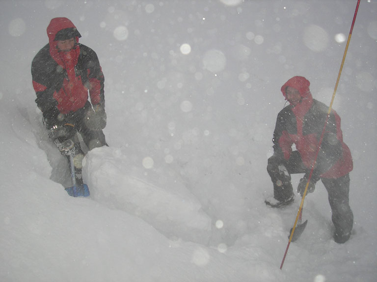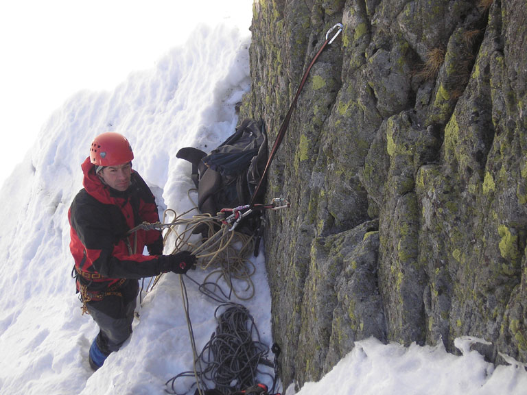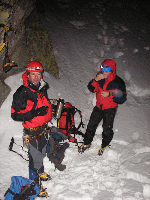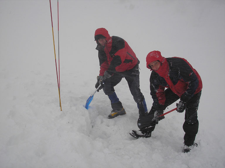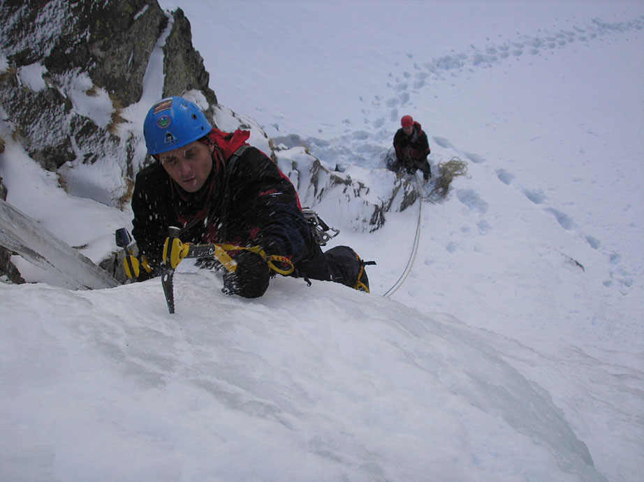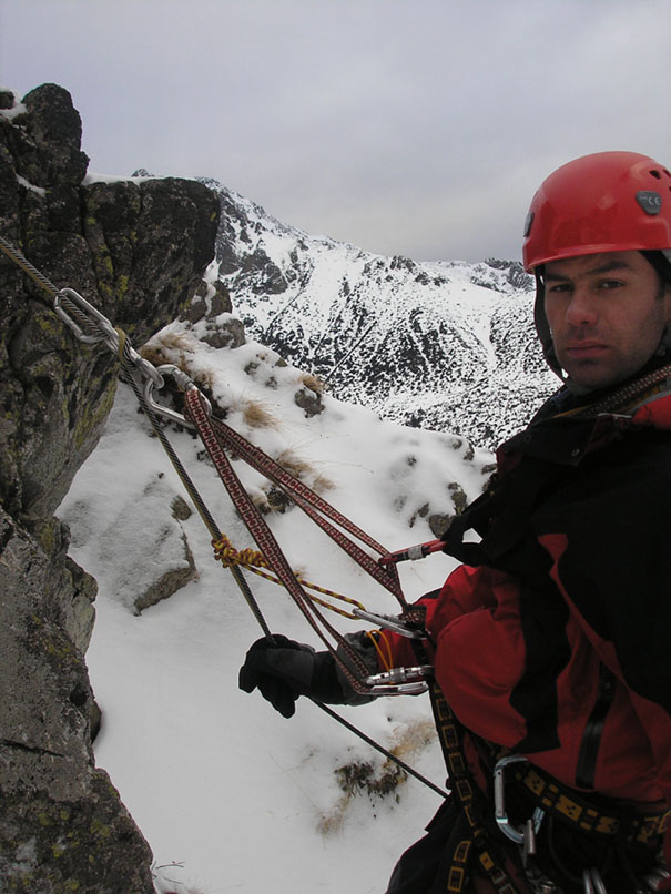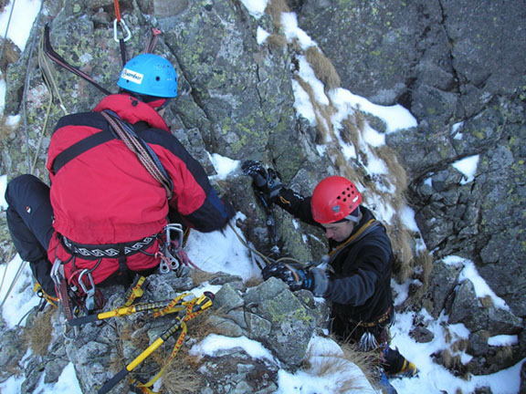 Letošní teplé počasí s minimem sněhu se nevyhnulo ani Tatrám. Naštěstí ledy vydržely a nakonec jsme byli s Lubošem (HK AKA Praha) rádi, že nebyla velká kosa - oceňovali jsme zejména při delších prodlevách na štandech (skoro pořád) na větrem bičovaných místech (skoro všude). Poslední den se zima probrala, během noci napadlo kolem dvaceti čísel sněhu a tak jsme si mohli vyzkoušet norskou lavinovou sondu, vyhledávání v lavině a další legrácky v „realističtějších“ podmínkách.