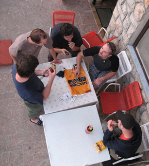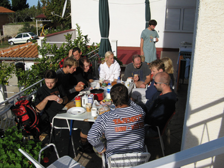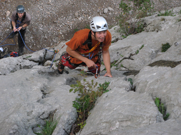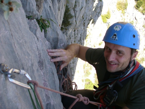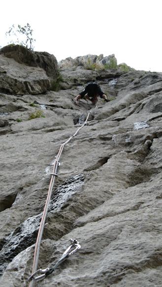 Celá akcia se odehrála alespoň pro některé LOSY ve znamení mírné dezorientace až bloudění. Již během nočního přesunu vozu „C“ byl učiněn pokus o únos tohoto i celé posádky do Srbska. Agent KHK to s námi převážně spícími ostatními napálil ze Záhřebu rovně (teda vlastně doleva :-) ) a nebýt včasného zásahu obživlých duchapřítomných pasažérů (podezřelá rovina, podezřele dlouho), byli jsme na oběd v Bělehradě. Škoda. Zbytek čtvrtka propršel a tak až na Bašku s Dušanem, kteří dovedou lézt i za mokra, začalo se lozit až v pátek. Papírově slibná skupina ve složení Borůvčák, Macík a Fuga se hned ráno, po rozlezení, vydala do papírově přehledné a pěkné cesty (5a). Když k polednímu dosáhla nástupu, nezaváhala a začala neohroženě zdolávat jednotlivé délky. Během šestidélkového lezení došlo třikrát k nenalezení průvodcem avizovaných štandů, celý výlet se tím poněkud protáhl (celkem zdoláno sedm a půl délky) a výprava dorazila do VILY se setměním, přesto v dobré náladě. Uznalé zamručení Macíkovi, který celou taškařici absolvoval ve Vetách (a s batohem). Hmmm. Následně proběhla improvizovaná oslava KHK narozenin; štěstí, zdraví, dort a svíce, zopár douškov travarice a - už Ti, lásko, není dvacet (jedna) let….:-).