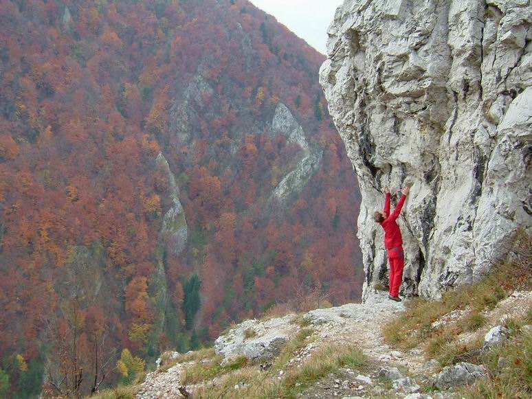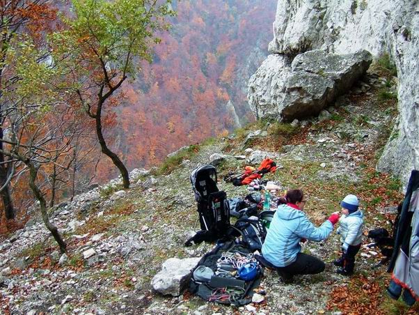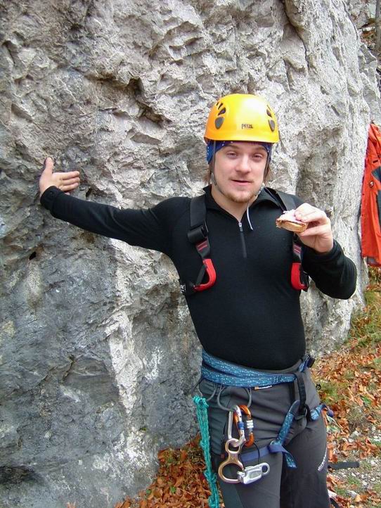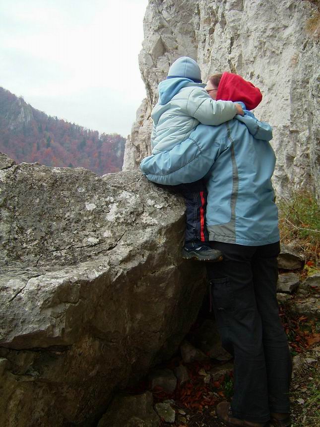 Nedělní ráno jsme si zpříjemnili posezením u vyhořelého ohniště, nedaleko vroucího kotlíku se svařeným vínem červeným a pak už i bílým…Pohodovou atmosféru dodal Šimon a jeho scénka „Sedím na kolíku a je mi dobře“ :))) Víkend jsme zakončili nezbytným malým výletem na velký převis…Ta střecha Slovenska je opravdu veliká…Moc díky za krásný svatební dar!!! :) Horám a skalám zdar a hurá domů…