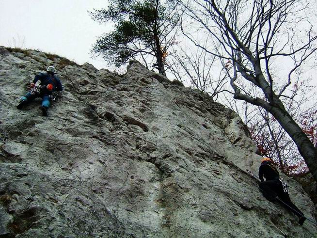 V sobotu nám to nedalo a vyfuněli jsme na Manínskou Stráž. Protože ale foukal chladný vítr z hor a protože se patra lesních dělníků s motorovejma pilama rozhodla rozřezat půl lesa, brzy jsme to zabalili…