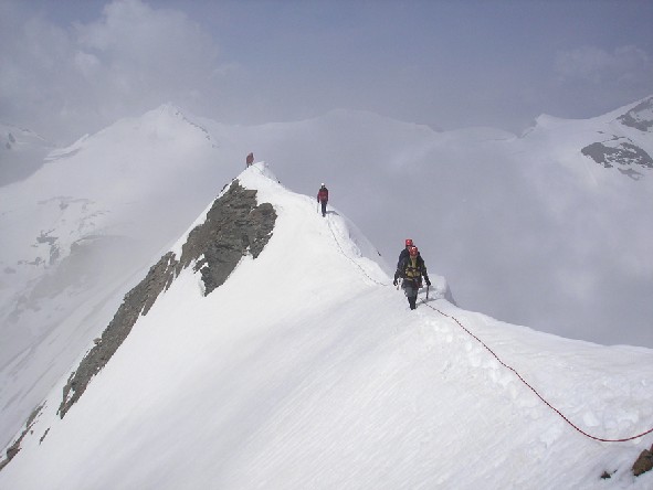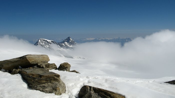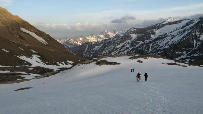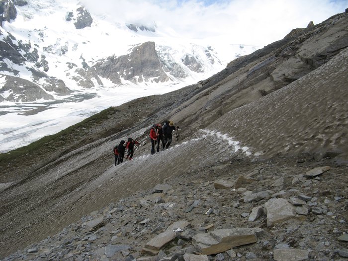 Legendární GrossglocknerHochalpenstrasse nás uzakrutovala na parkplatz Franz Josefs Höhe a ke zbytku výpravy, kterou byli Duško, Baška, Milan, Ondra, Mário a Peťo. Starostlivý hlídač tunelů nám hned na prvních metrech po odchodu radí a vzápětí nařizuje použít cestu přes ledovec - nábližku delší, zato méně schůdnou. Čímž se nám cesta na Oberwalderhütte poněkud komplikuje. Touto cestou bych mu ještě jednou velice rád poděkoval a vzkázal, že bohatýrské poklepání cepínem po zádech má stále u mne schované!