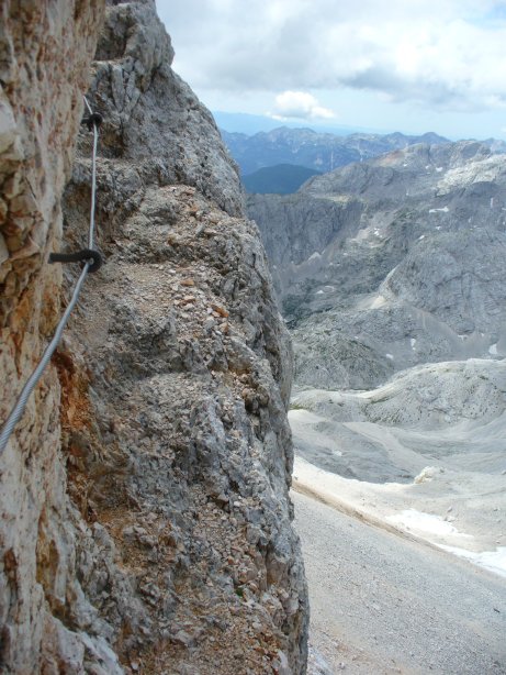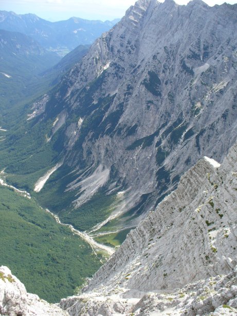 Co doporučit. Triglav určitě za to stojí. Tenhle gigant nemá v okruhu 90 km konkurenci. Ačkoli jsem to dal za den, rozhodně doporučuju rozložit výstup na dva dny - v případě půjdete-li od severu. Základem jsou dvě flašky (vody) a přilbu na hlavu. Úvazek a feratový set se hodí, ale některé úseky, kde stačí jednou uklouznout a šmytec, nejsou jištěné vůbec… Nechoďte tam o víkendech a bacha na počasí - v mlze vám napomůže ani GPS z Mountfieldu. Jinak severní stěna Triglavu mi připomínala stěnu Malého Kežmaráku. Impozantní, dlouhá, mohutná. Akorát bych se při lezení bál kamenů shora - cesta nahoře vede skoro po hřebeni.